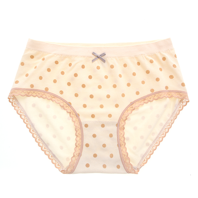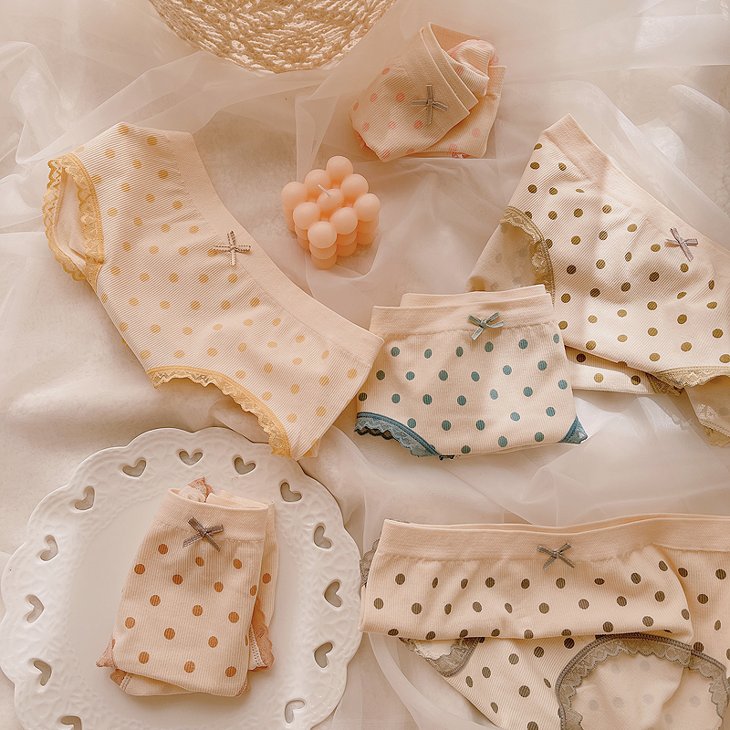 Yang Ton Japanese simple high-waisted underwear thread modal one piece seamless cream polka dot cute girl