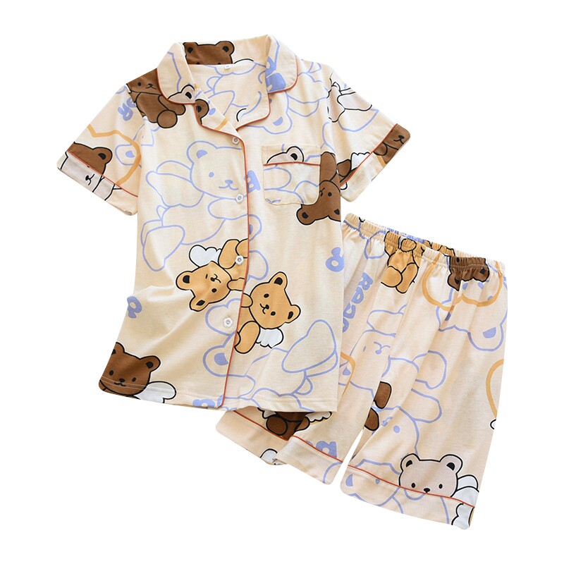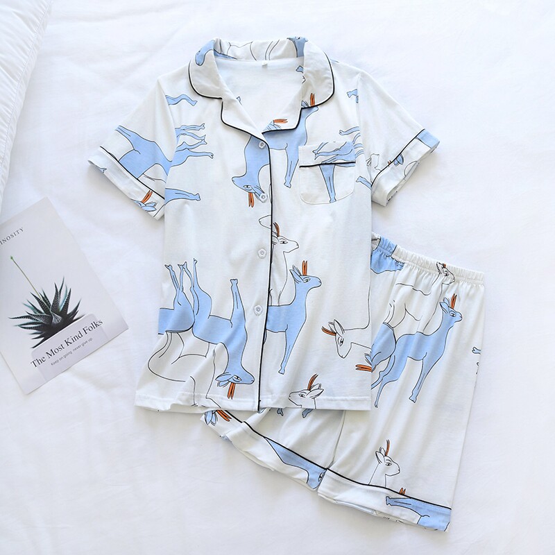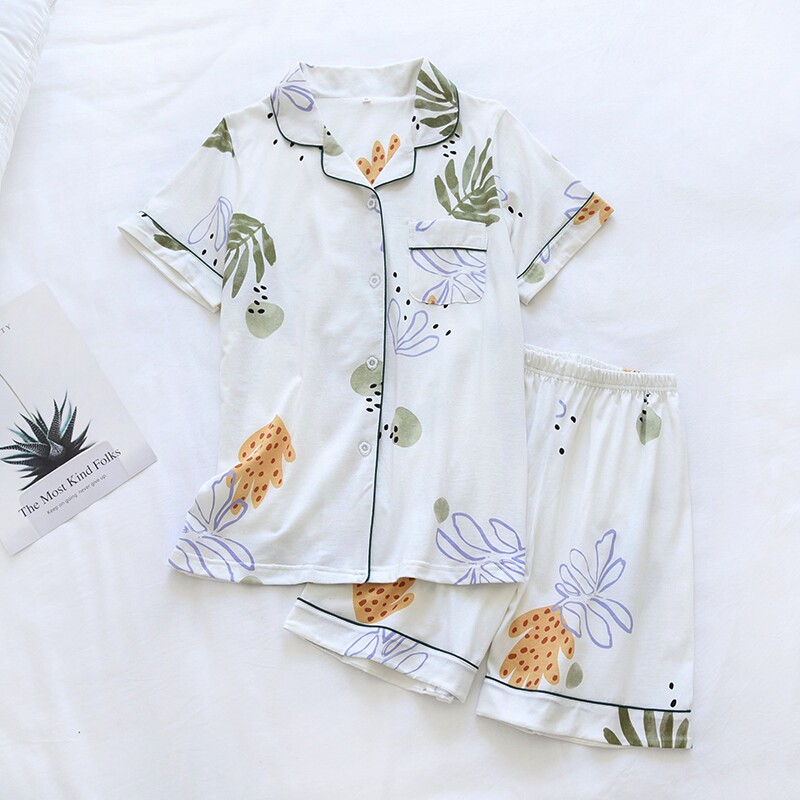 Sleepwear Woman Summer Thin student casual cute pure cotton knit short sleeve shorts Home Two-piece Suit Summer