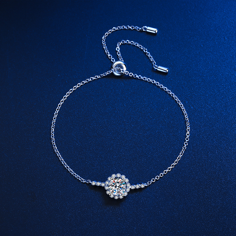 D color Moissan stone bracelet female 925 sterling silver ins niche light luxury diamond round bag birthday gift to girlfriend