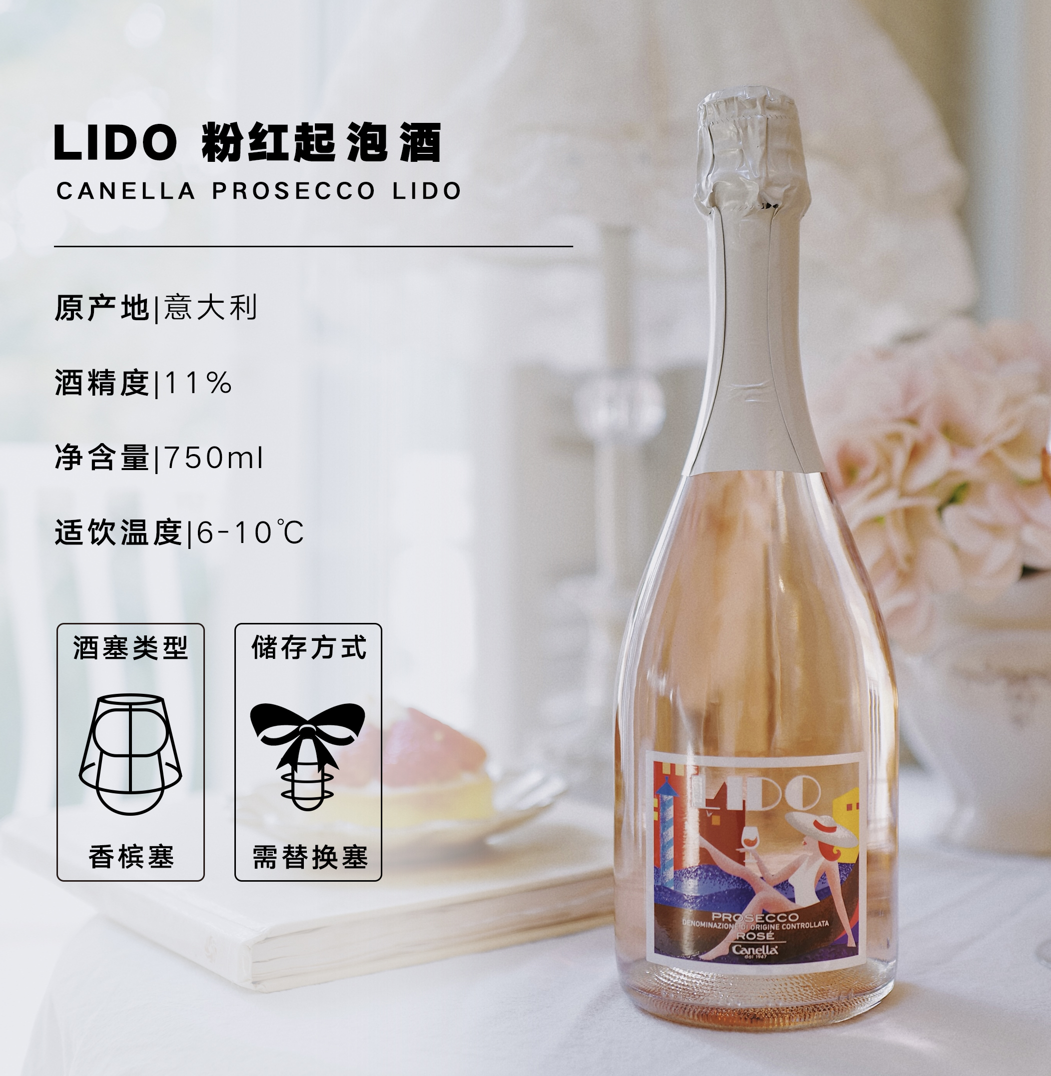 Gold Award Winner Italian Canella New Lido Prosecco Pink Dry Sparkling Wine