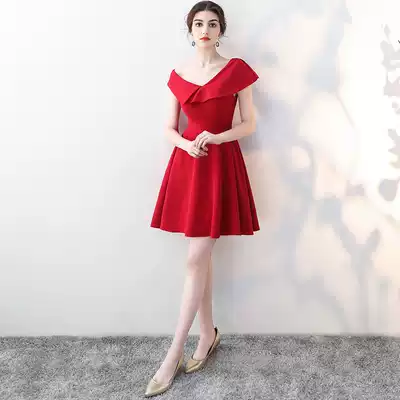 Toast clothes can usually wear 2021 new bridal wine red engagement dress small dress red back to the door