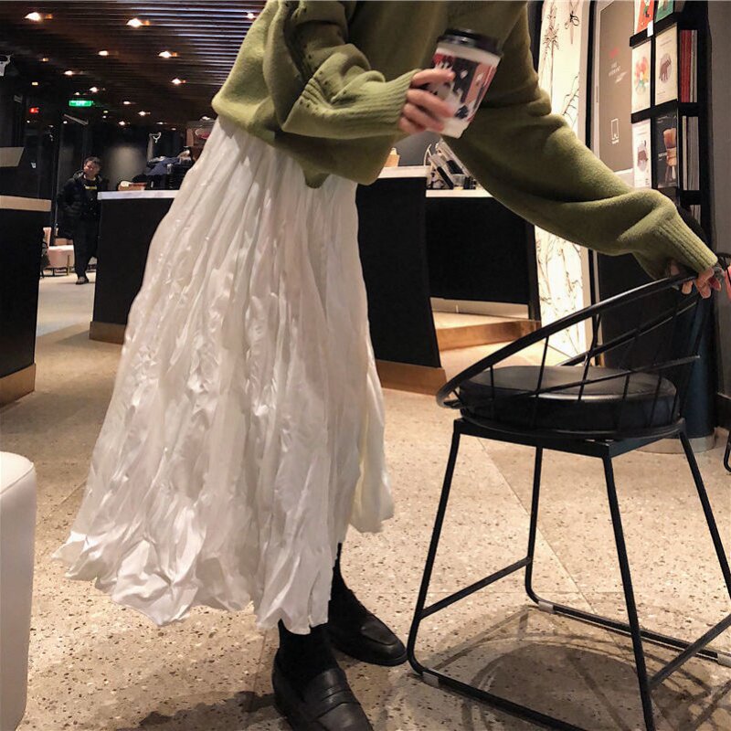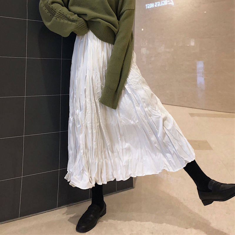 Medium long version of half body dress 2021 new spring autumn Summer 100 lap tightness high waist white short subletdown pleated skirt