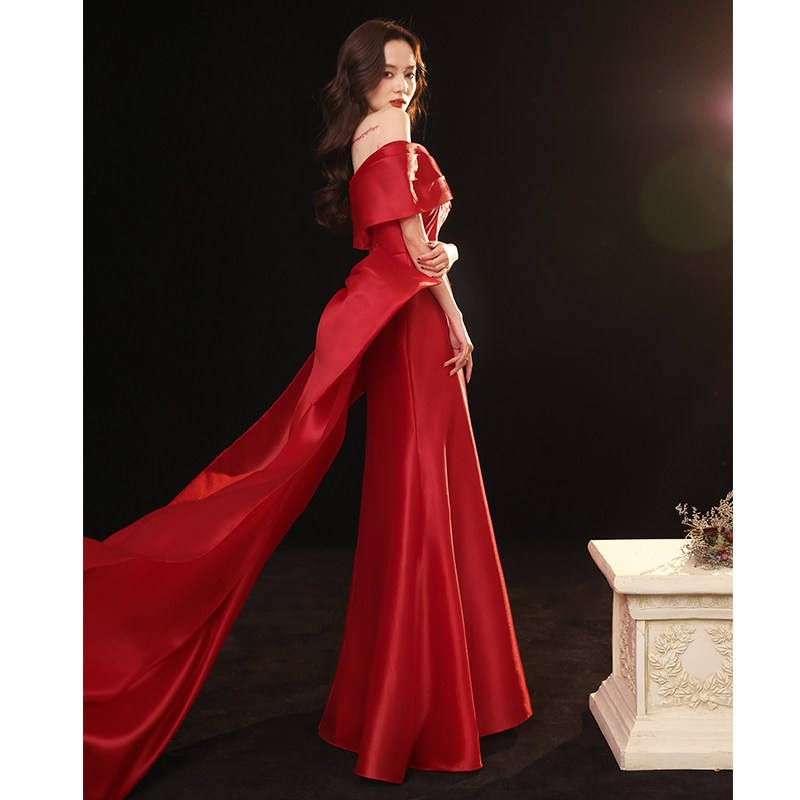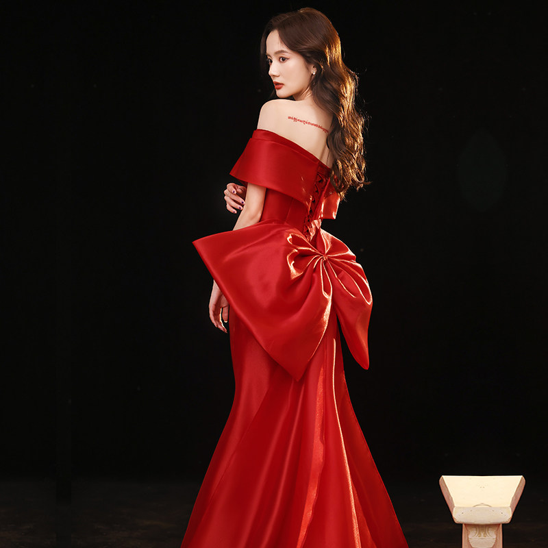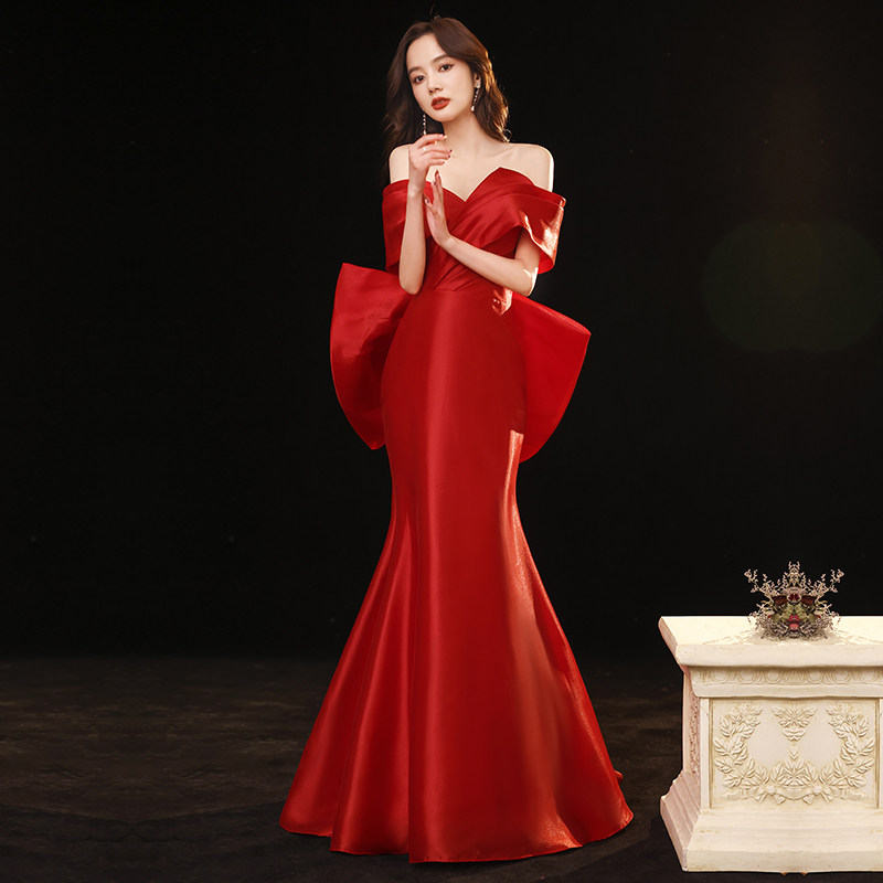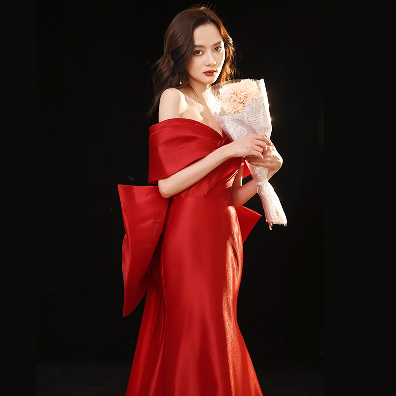 Great Butterfly Knot Toast Bridal Bride Wedding Wine Red Fish Tail Lined High End Atmospheric Evening Dress Foreign Dress Woman