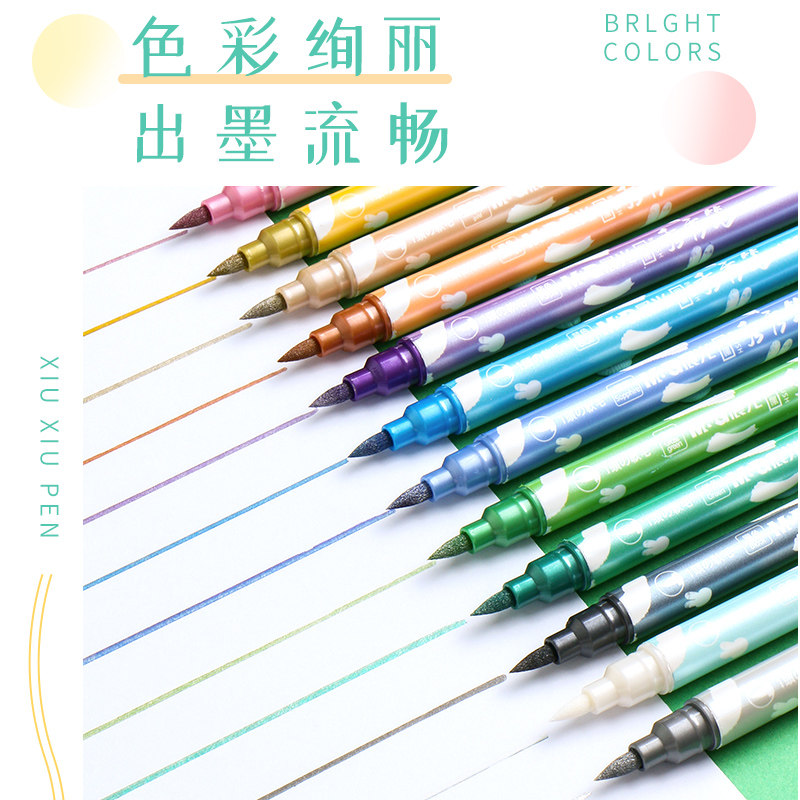 Morning light two-headed metal Xiuxiu pen Student painting handmade account diy set Color marker pen Paint pen Beauty pen Highlighter special style marker pen