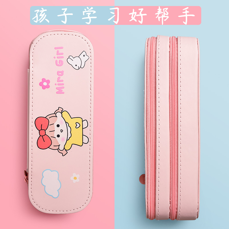 Versatile double layer pen pouch ins Japanese students cute large capacity pencil case girl new female net red lead pencil case small fresh retro style young girl hearts cute lead pencil case