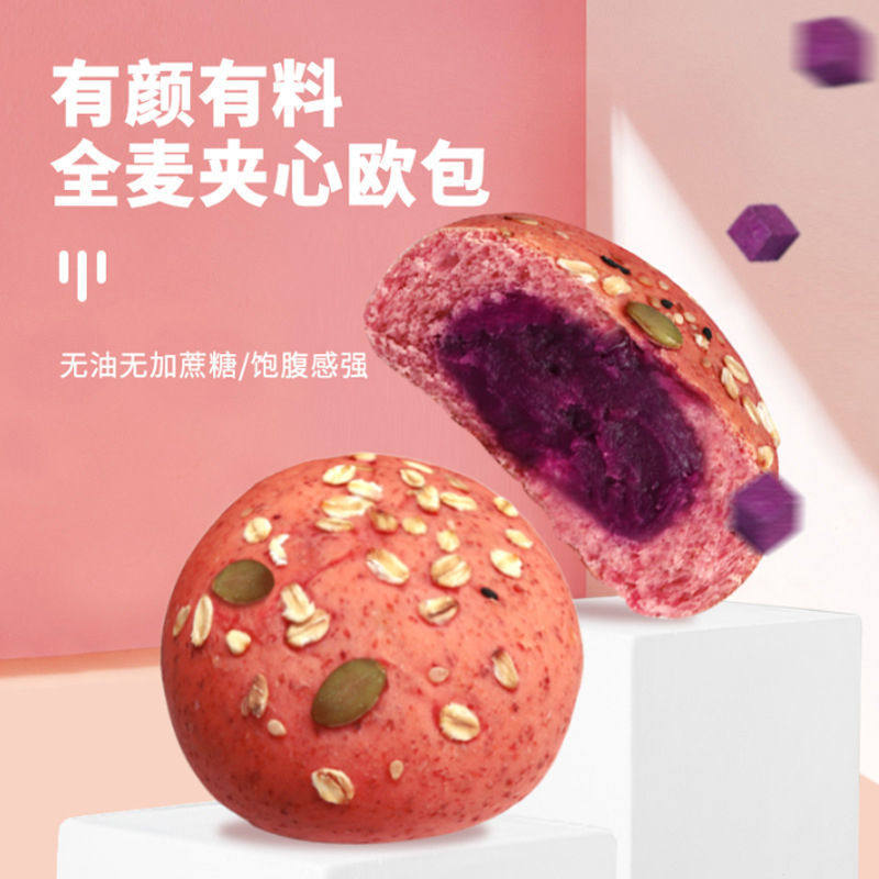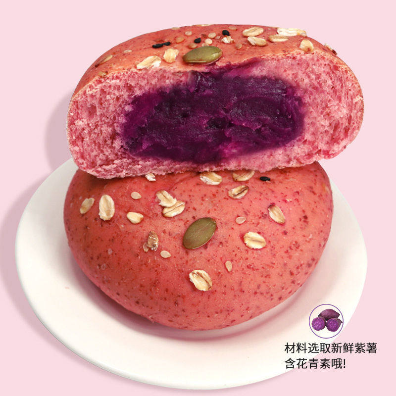 Whole Wheat bag red velvet purple fries with filling, sandwich without cane sugar Meal Rye Bread Satiety