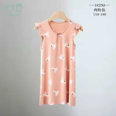 Children and children modal nightdress summer cool thin princess style little girl pajamas home skirt polka dot rabbit