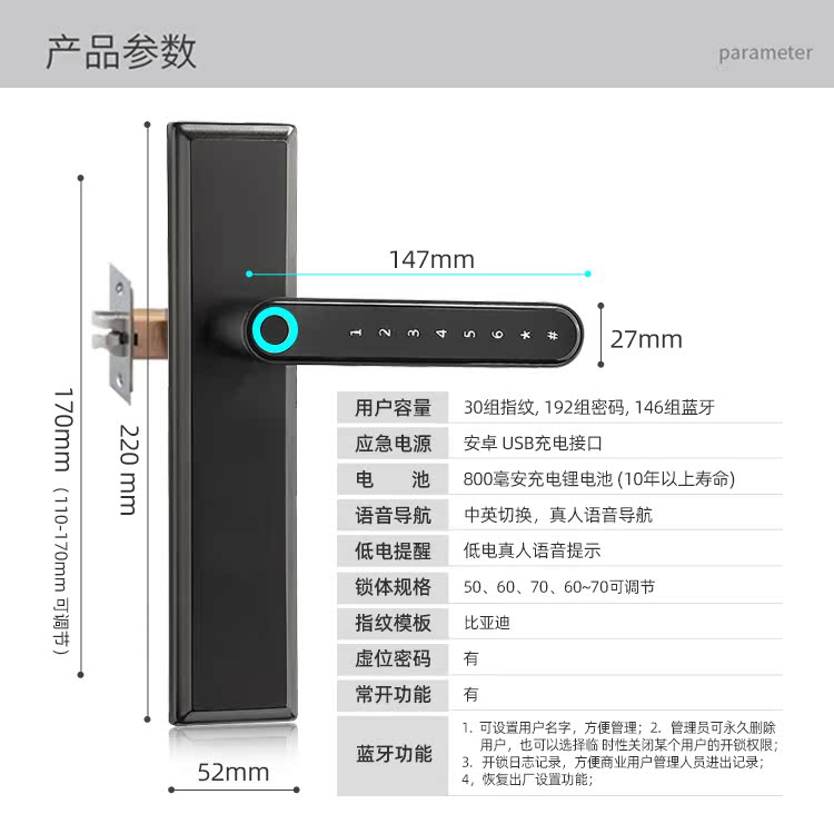Smart office password lock wooden door fingerprint lock home bedroom bedroom door universal with key Bluetooth APP