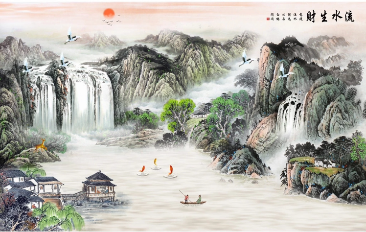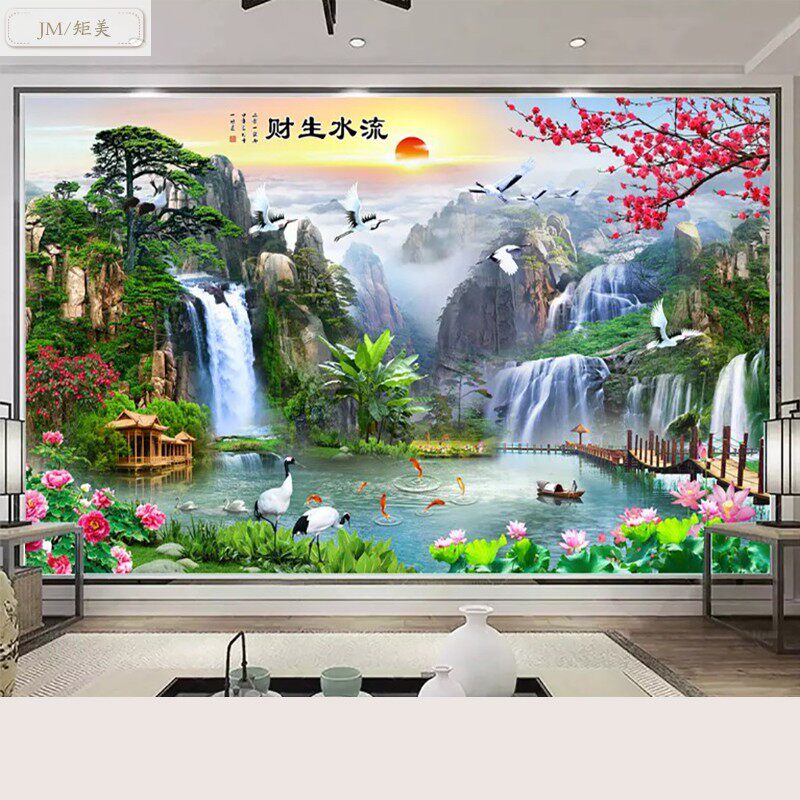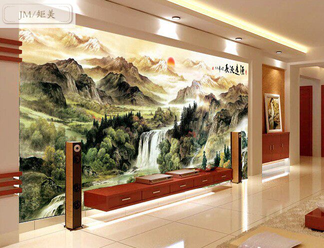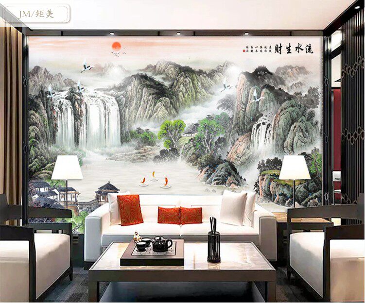 Chinese style ink landscape TV background wall integrated wall panel 18d atmosphere hotel bag compartment decoration bamboo and wood fiber board