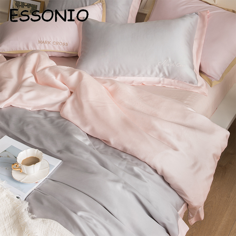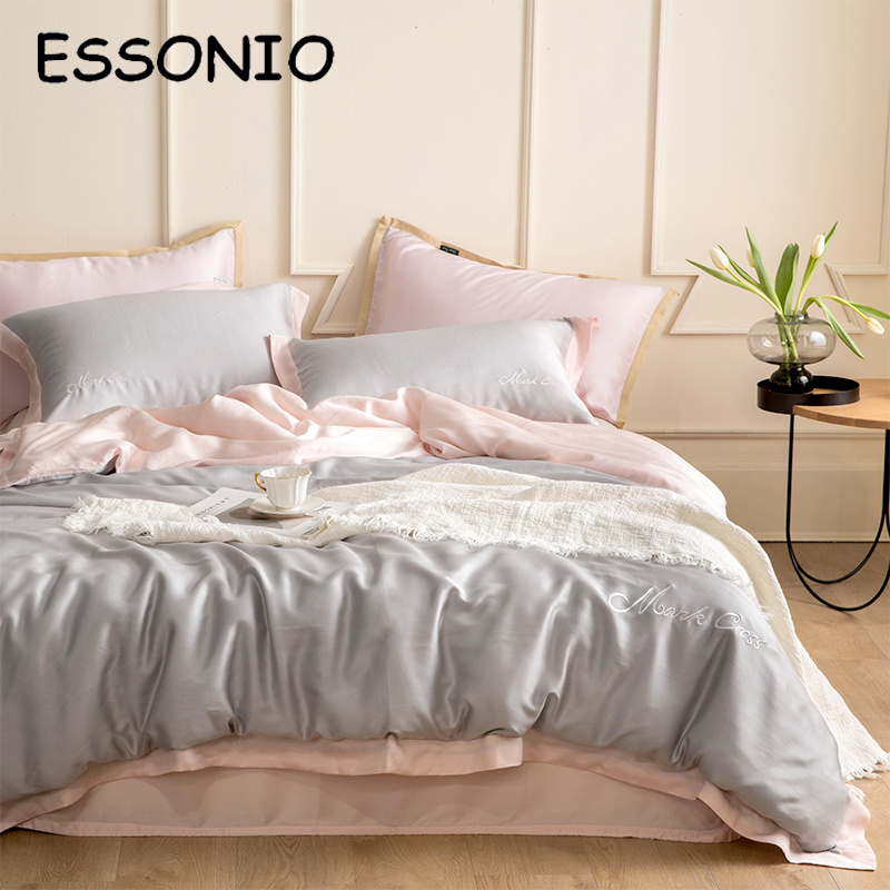 ESSONIO spring and summer 100 pieces of Tencel four-piece set of high-end bedding quilt cover washed ice silk quilt bedding