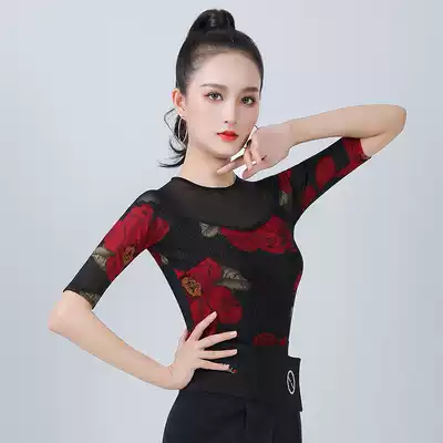 Danbaolo 2021 Latin dance suit new dance suit mid-sleeve thin T-shirt national standard dance dance suit high-end dance clothing
