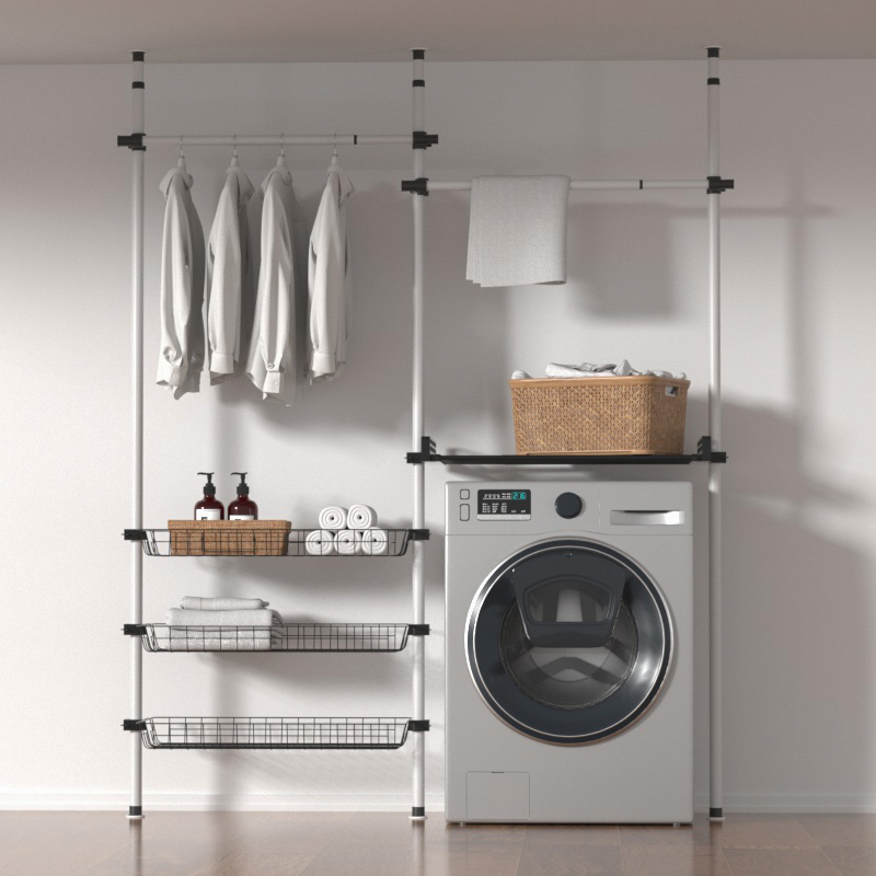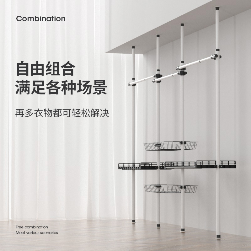 Hanging rack Floor-to-ceiling bedroom open drying rack Simple wardrobe without drilling telescopic rod assembly shelf
