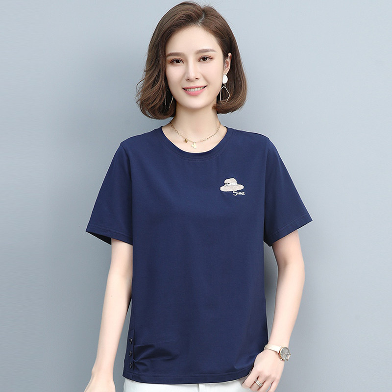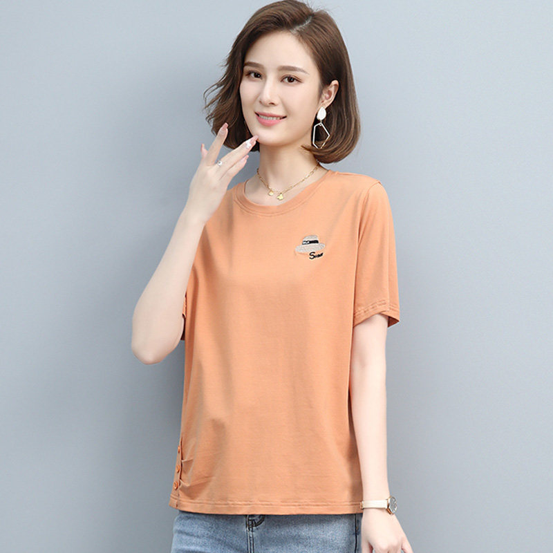 The posture show 2023 summer new T - shirt short sleeve sleeve sleeve style round - collar temperament simple and relaxed