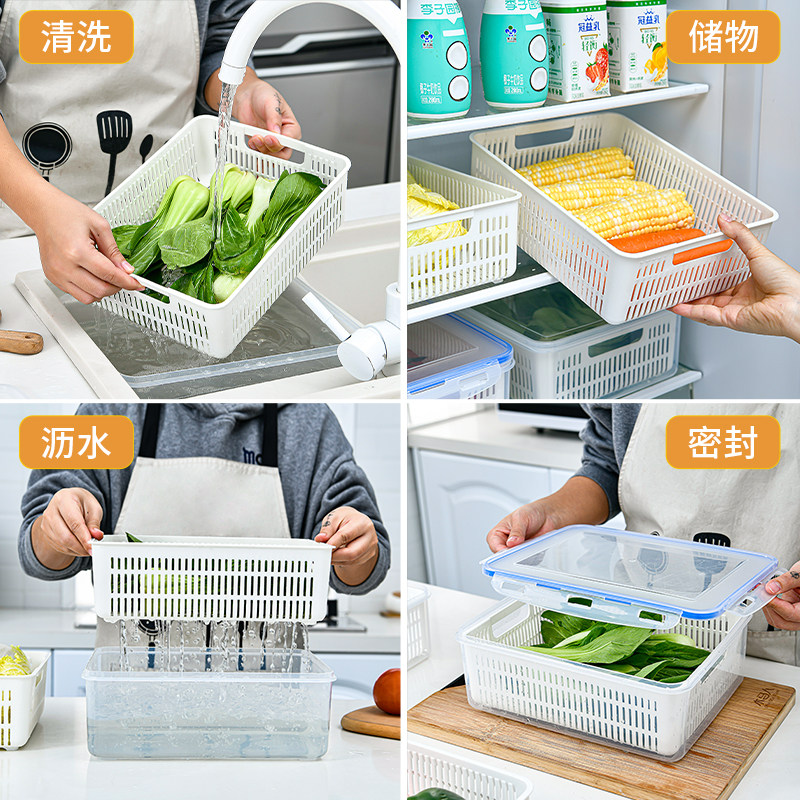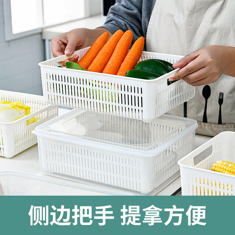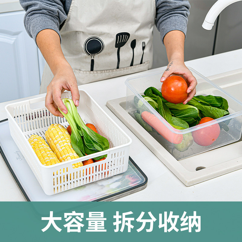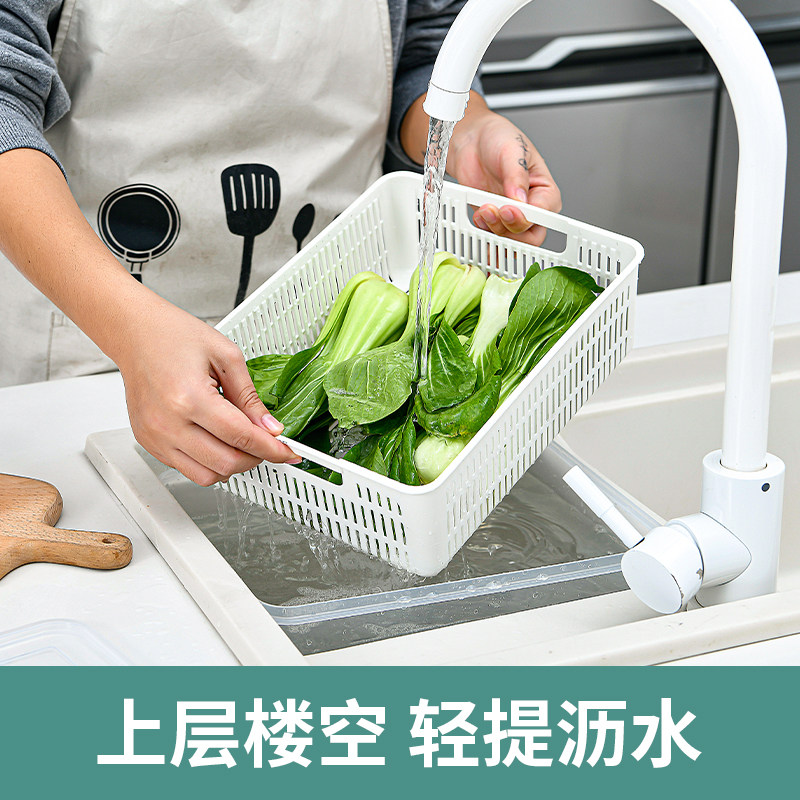 Draining basket with lid kitchen living room multi-functional double-layer rectangular tableware fruit and vegetable plastic household large washbasin