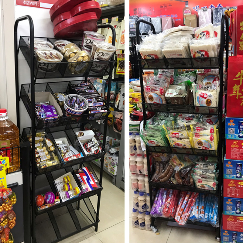 Supermarket shelves Convenience store beveled grid display rack Small goods snack shelf Cosmetics display Commercial multi-layer