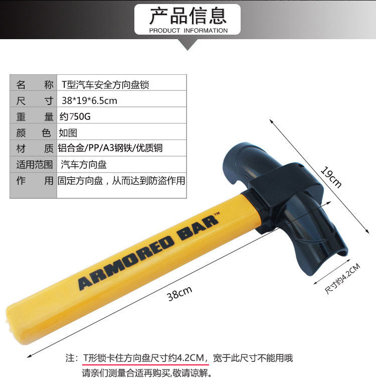 T type (no steering wheel cover available) hook lock (65-75cm telescopic range available)
