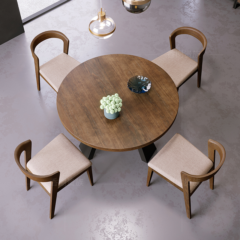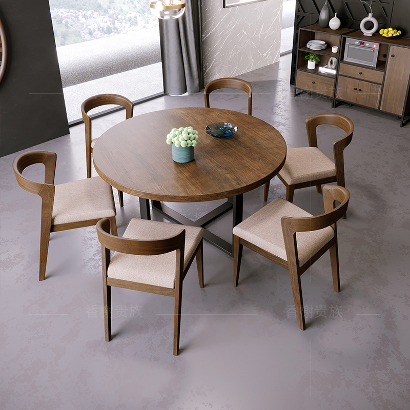 American retro solid wood table Home Small family type minimalist iron art round table hotel dining room in talks for dinner table