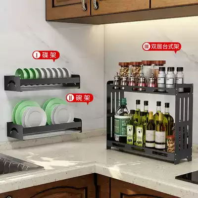 Kitchen storage rack household seasoning dishes and dishes supplies Daquan Wall kitchenware knife holder rack non-perforated wall Wall