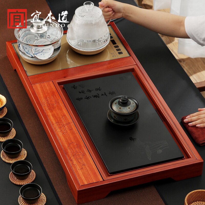 Solid wood tea sea fully automatic one rosewood tea tray set home living room office tea making tea table kettle