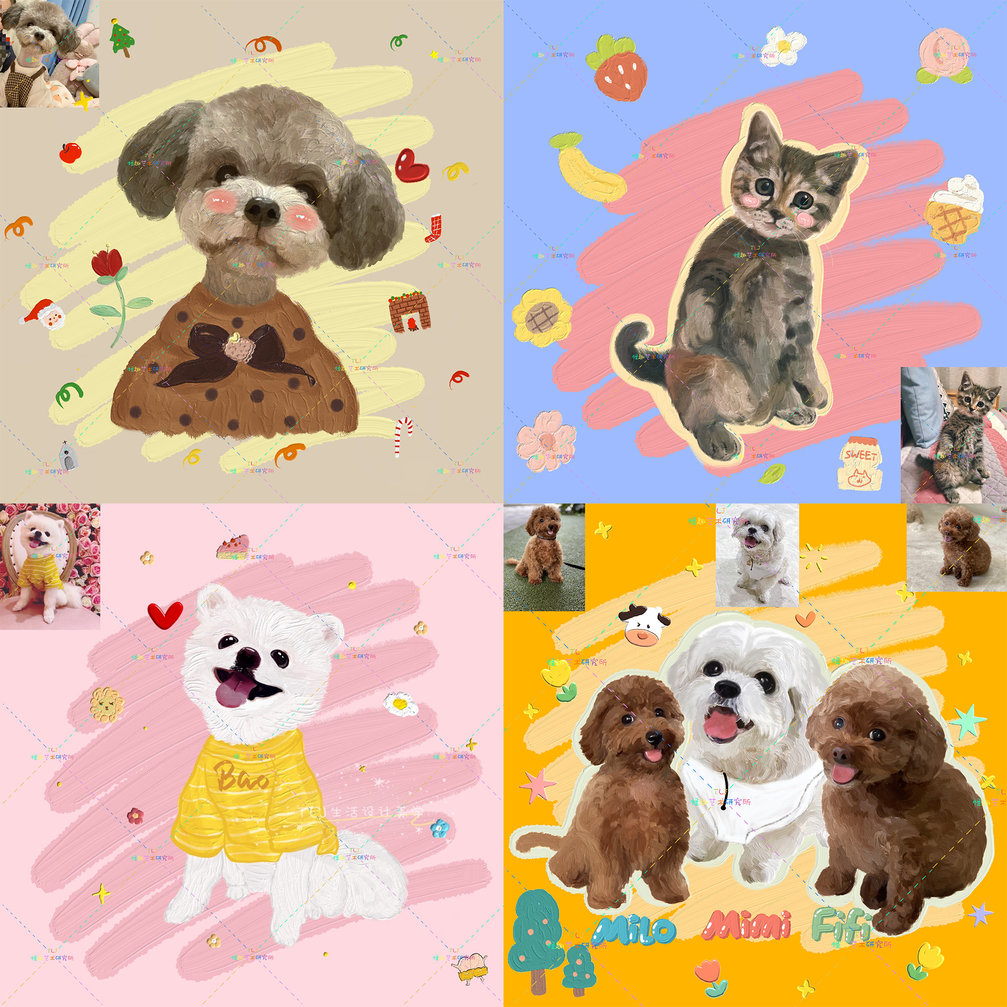 Pet Portrait Custom Katong Manga Cartoon Avatar Hand Painted Oil Painting Wind Kitty Dog Illustrations Commemorative Photo Generation of About Draft