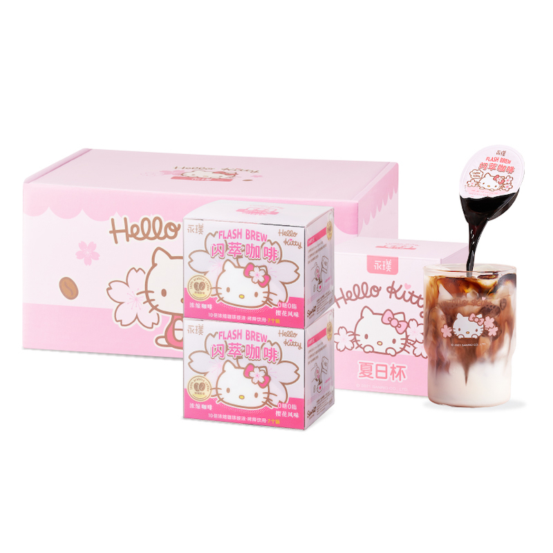Hello kitty Japan imported sparkling cherry blossom coffee stock solution gift box contains summer cup