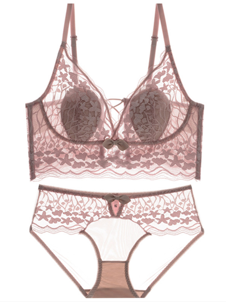 Beautiful back underwear women's big breasts show small no steel ring gather thin section sexy lace French white summer bra set