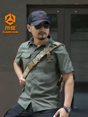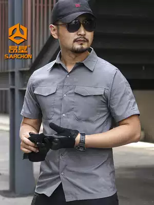 Summer outdoor short-sleeved shirt men's ultra-thin breathable military fan tactical quick-drying shirt lapel tooling casual men's top