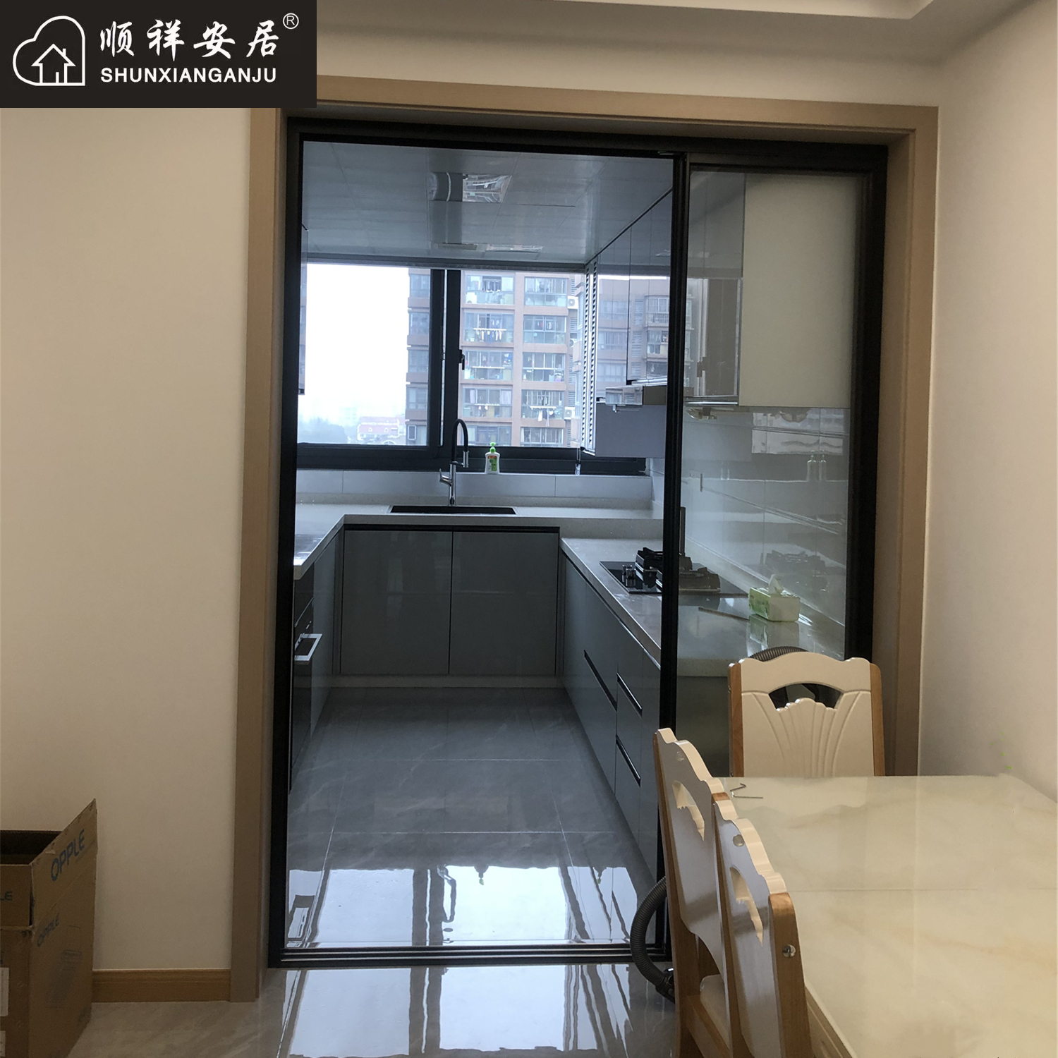 Shanghai Shunxiang Comfortable Housing Transfer Door Extremely Narrow Frame 10 cm Hanging Wheel Track Triple Linkage Titanium Magnesium Alloy Kitchen Glass Ramen