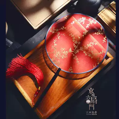 Chinese style mango Group fan Palace fan gilding long handle retro wind round fan photography fan Hanfu lady dance fan dance fan