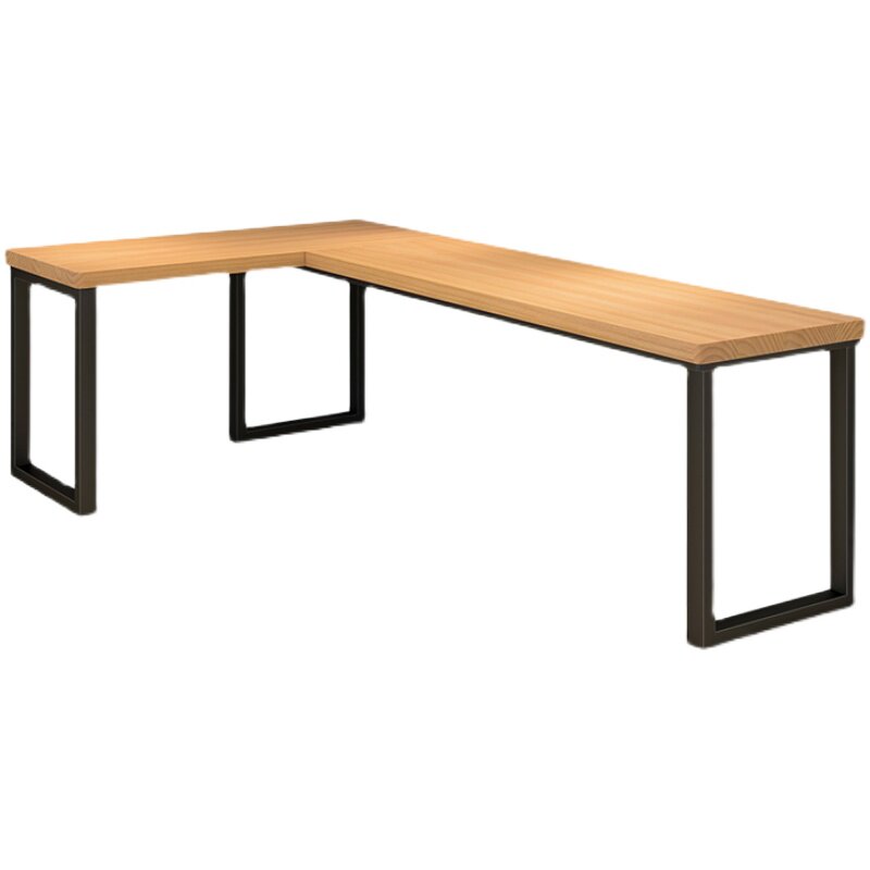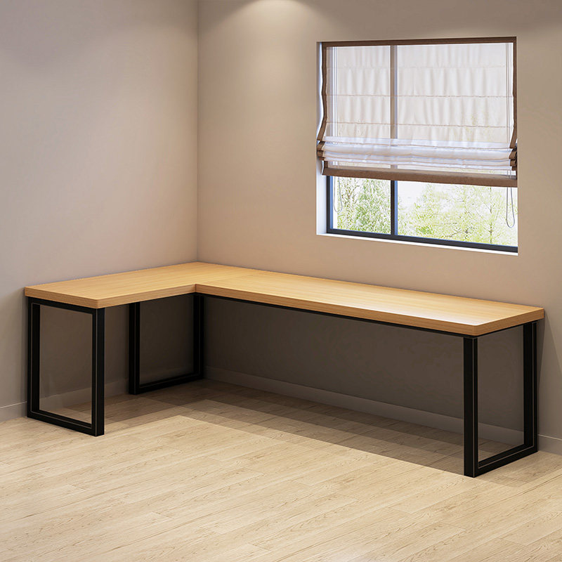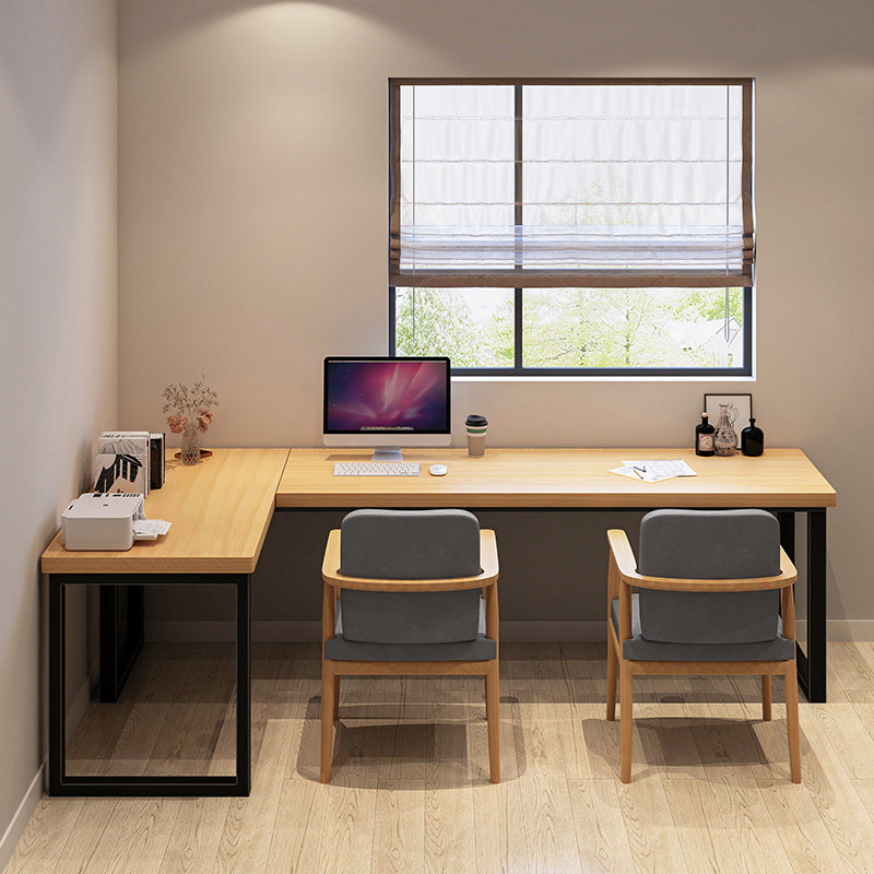 L-type desk double solid wood against wall log long writing desk customized Japanese large turning corner computer table