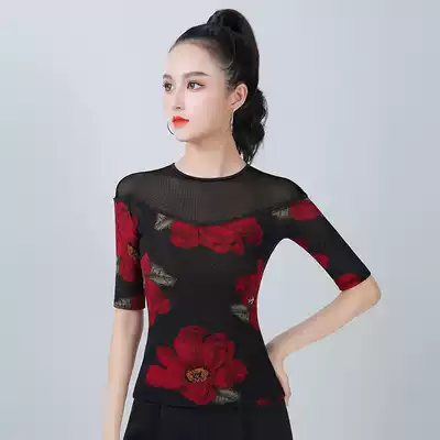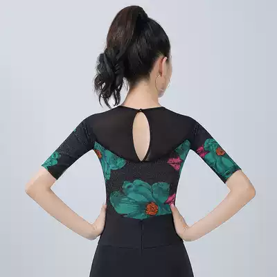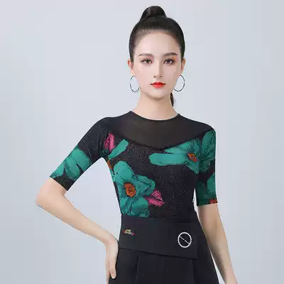 Dan Bo Luo 2021 Latin dance clothes new net gauze in the sleeve slim T-shirt national standard dance high-end dance costume