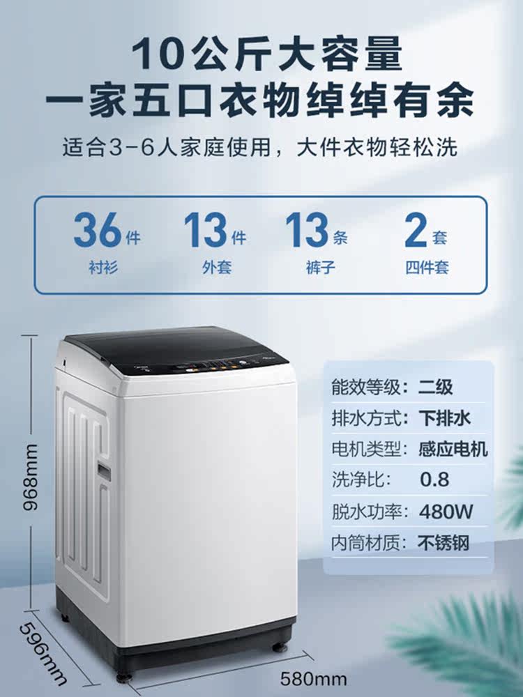 Midea Midea 8 10kg pulsator household intelligent automatic washing machine elution integrated large capacity