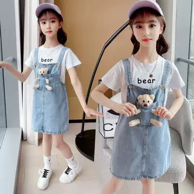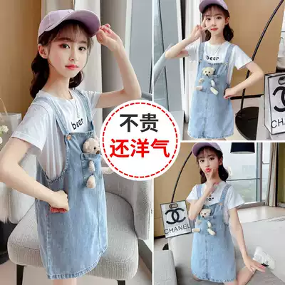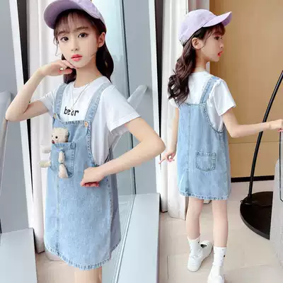 Children's clothing baby bag skirt girls denim summer clothes Summer 6 middle and large children 7 Western clothes 8 children 9 suits Ten-year-old thin section