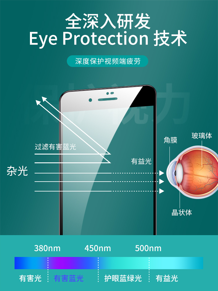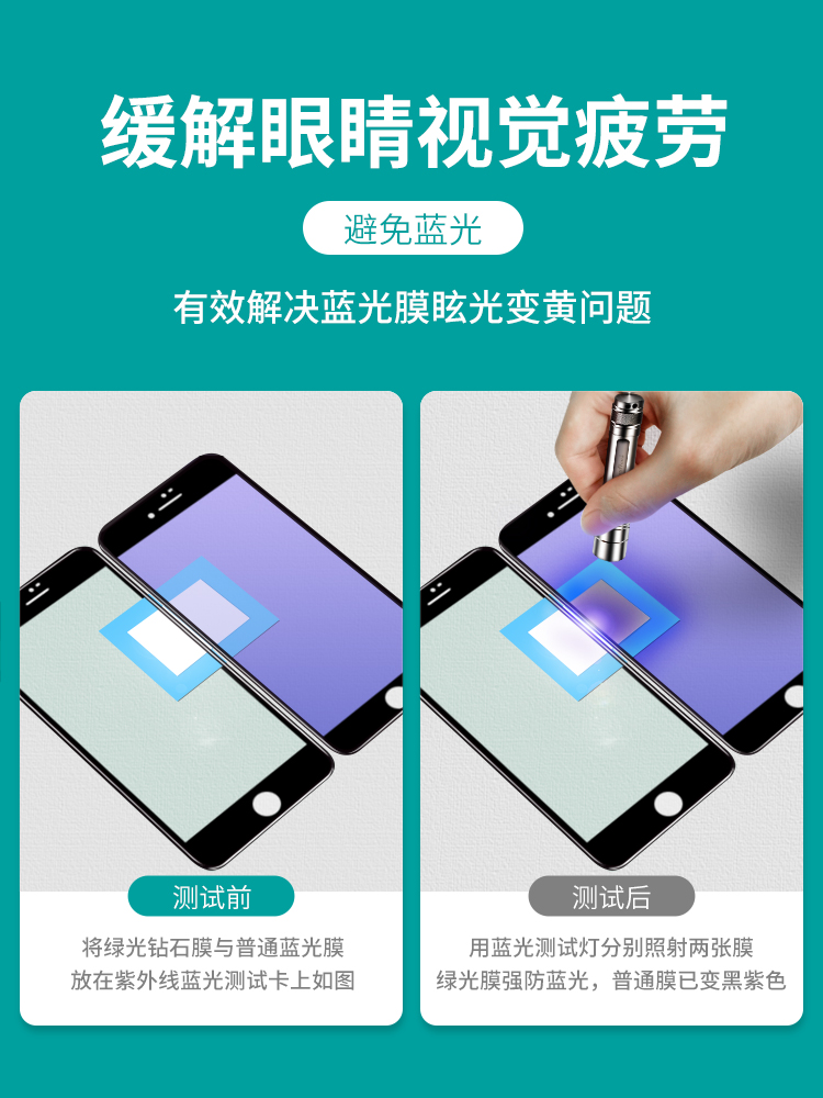 Applicable to Apple 8plus tempered film iPhone 7plus 6splus green phone film Apple se2 generation i7i8 full screen eye chlorophyll anti-wrestling film iPhone