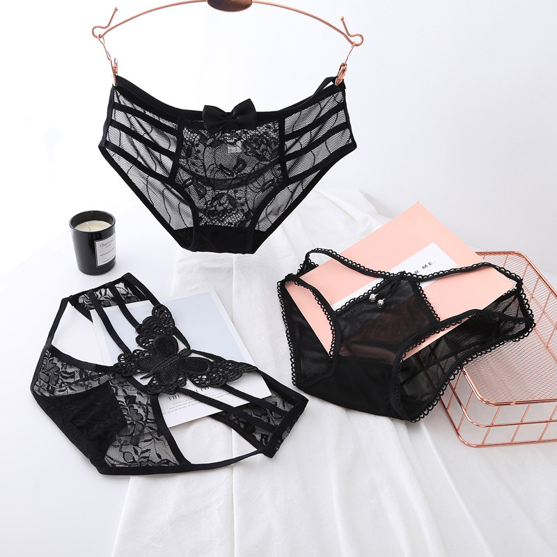 Sexy panties female lace temptation comfortable passion hot low waist ladies transparent black sexy hollow briefs