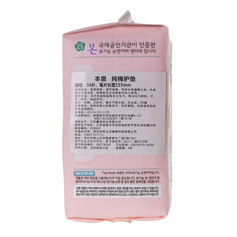 Benne Cotton Soft Pad Breathable no fragrant pure cotton pro-skin 155mm 34 slices