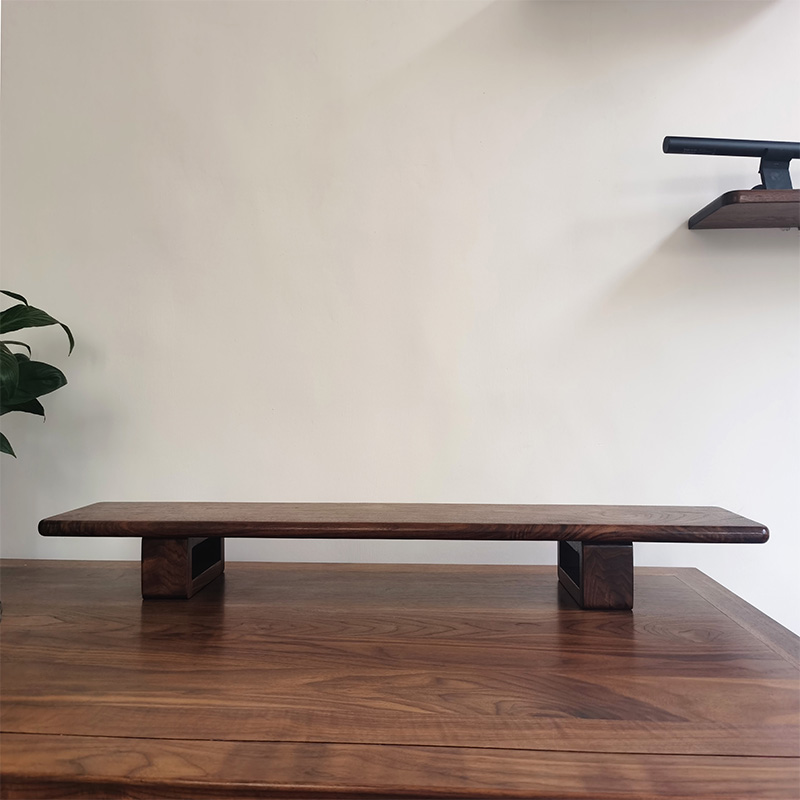 Office desktop storage rack black walnut solid wood heightened computer monitor TV heightened shelf