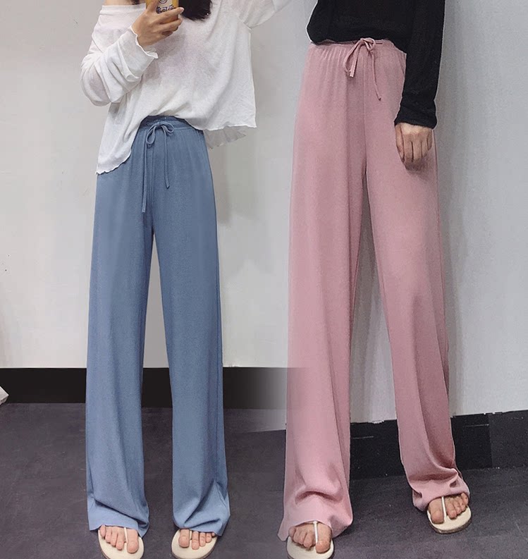 Maternity pants summer ice silk thin section outer wear large size wide pants pregnant women tide mom loose net red casual mopping pants