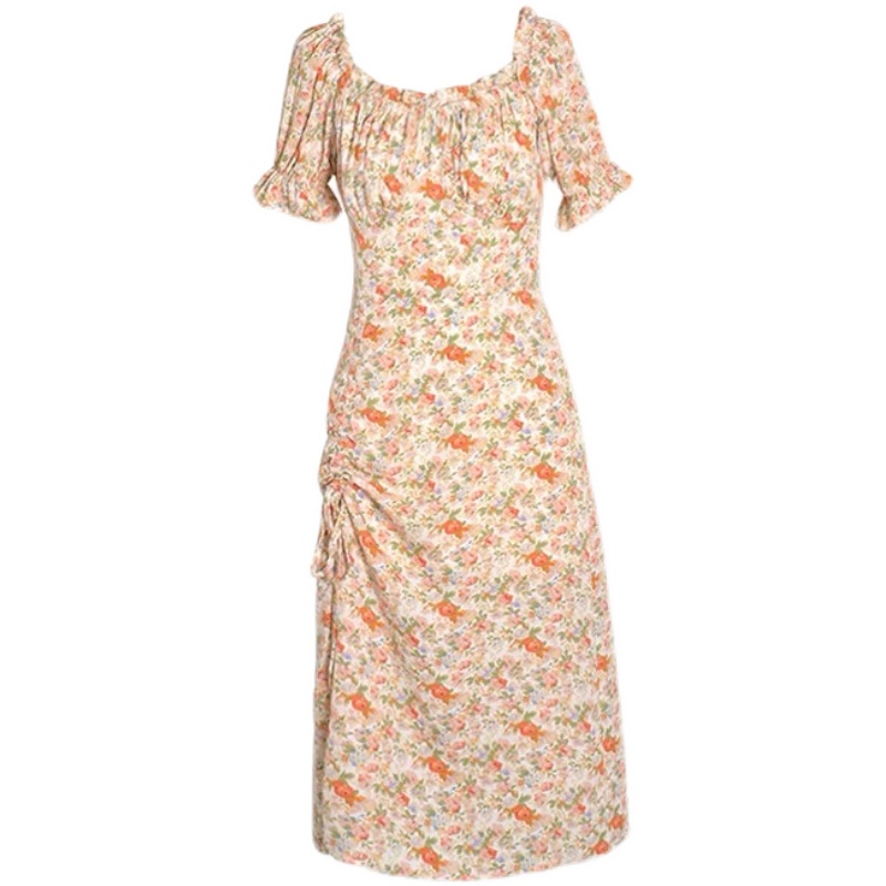 Sandro Moscoloni 2023 Spring and Summer New Oil Painting Crush Dress Lace Bubble Sleeve Sleeve