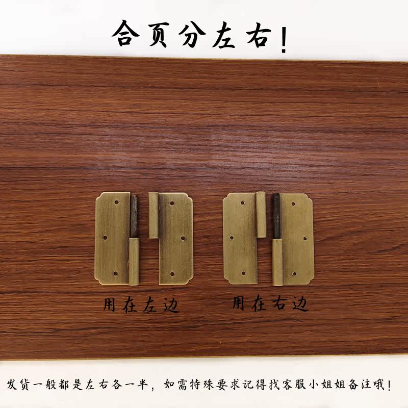 Square bright copper hinge Ming and Qing antique furniture bookcase wardrobe doors and windows pure copper hinge old-fashioned detachable wire drawing