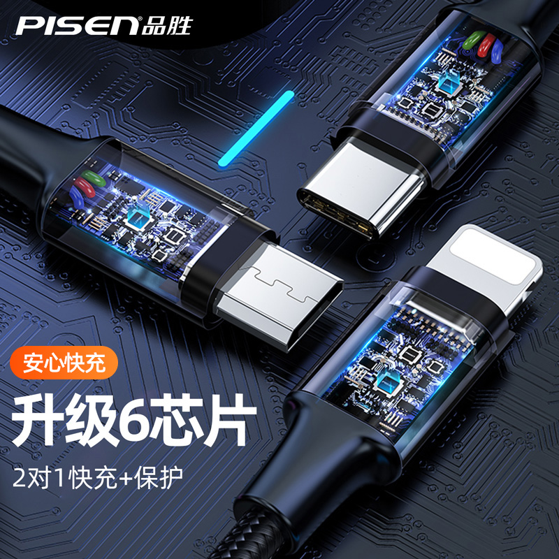 Pisces Charger One Tug Three Fast Charging Three-headed Three-in-one Cell Phone Charging Cable Fast Charging Multi-function Universal Apple Android Fast With Plug and Multiple Car Interior Kits
