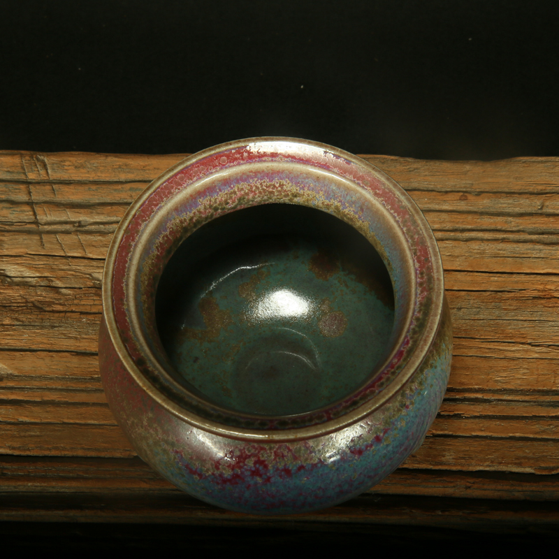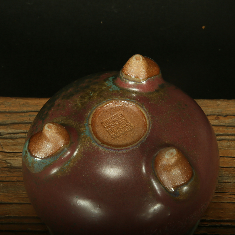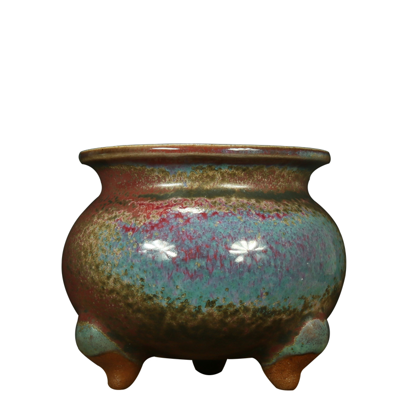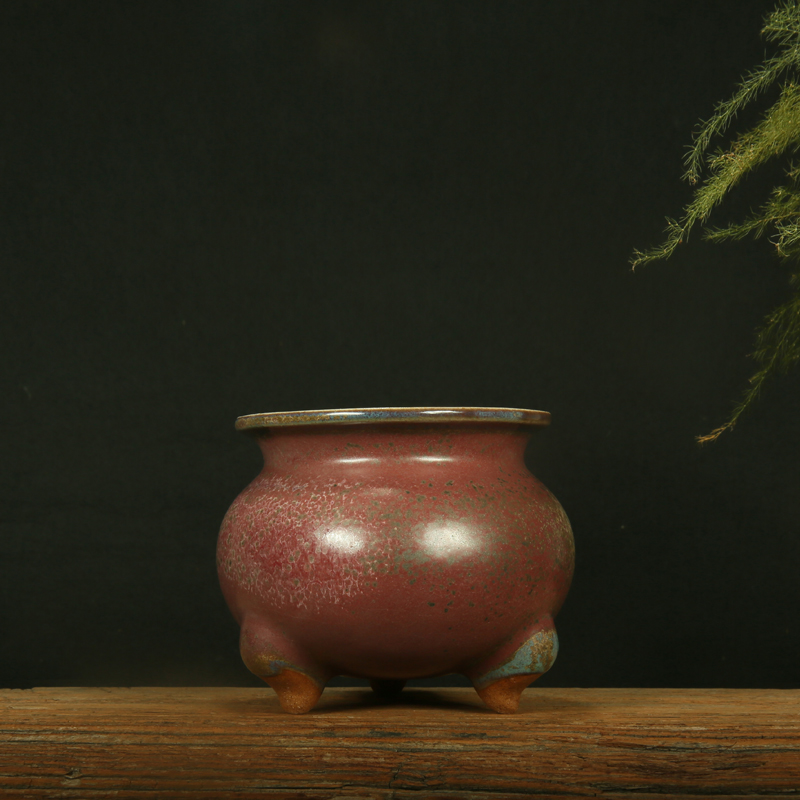 Jun porcelain three-legged incense burner ore glaze high temperature firing Young artist Zhang Qinfeng