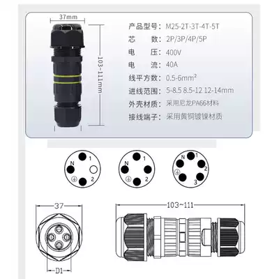 IP68 cable waterproof connector one in 2 3 4 out waterproof connector street lamp extension cord outdoor rainproof soaking water T