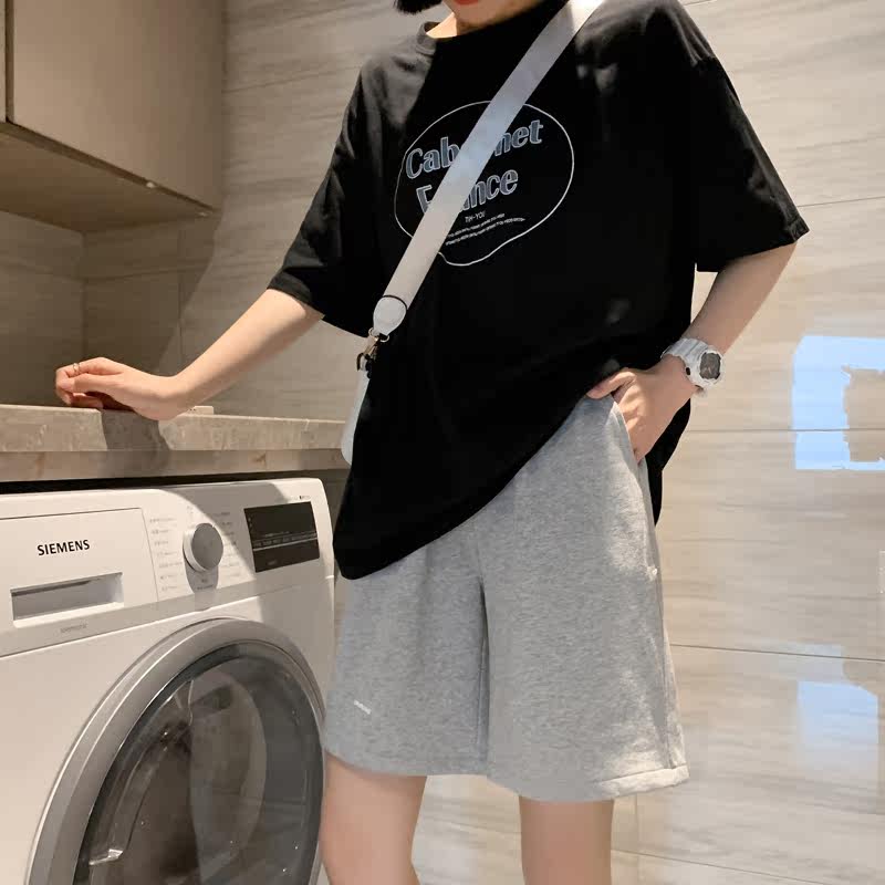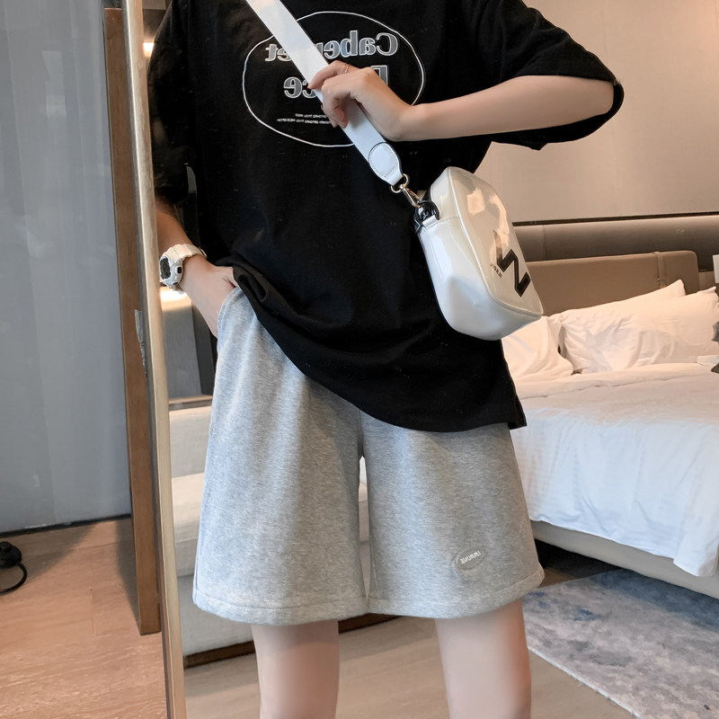 Grey sports shorts women's summer 2022 new thin section loose ins tide straight tube pure cotton high waist outer wear five-point pants
