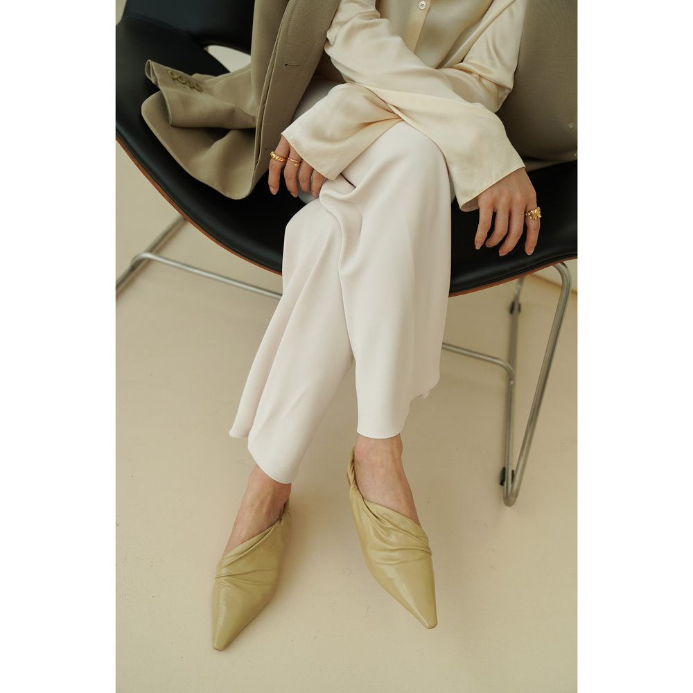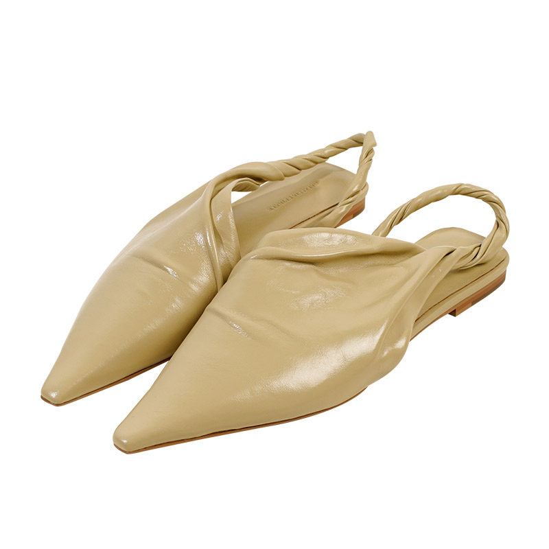 IORE×GS wrinkled butter leather strap sandals women 2021 new solid color genuine leather handmade single shoes pointed toe flat bottom