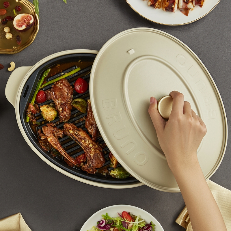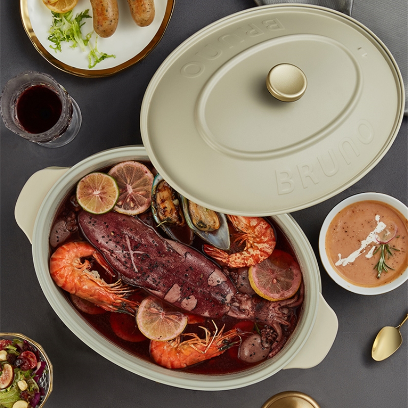 Japanese Bruno multi-function cooking pot oval light simple pot net red electric oven home barbecue hot pot all-in-one pot