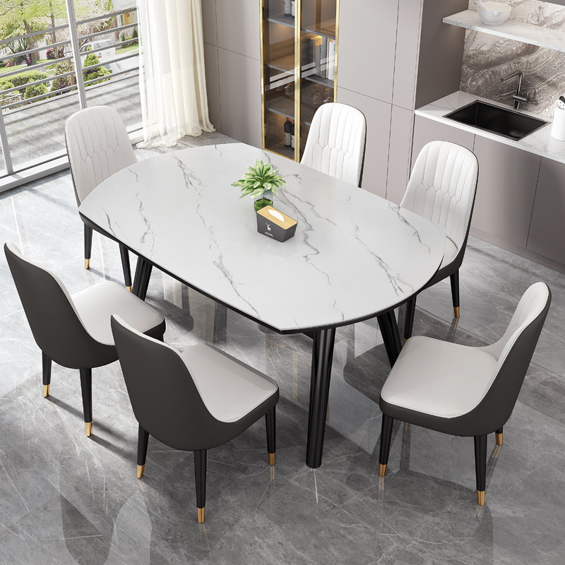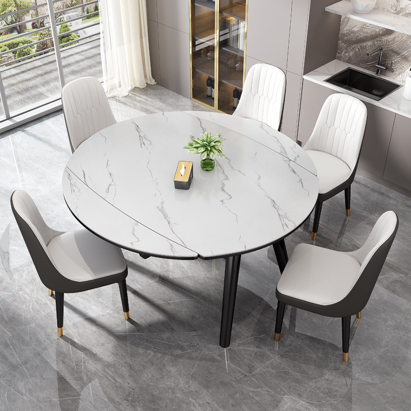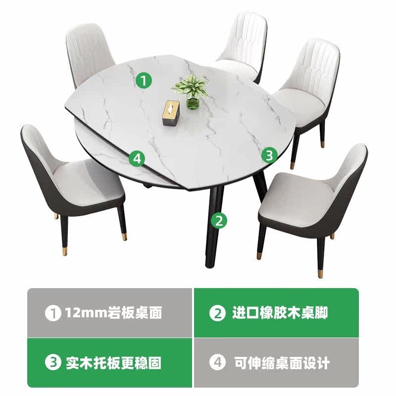 Light luxury rock board dining table and chair combination modern simple square round dual-purpose small apartment retractable solid wood dining table variable round table