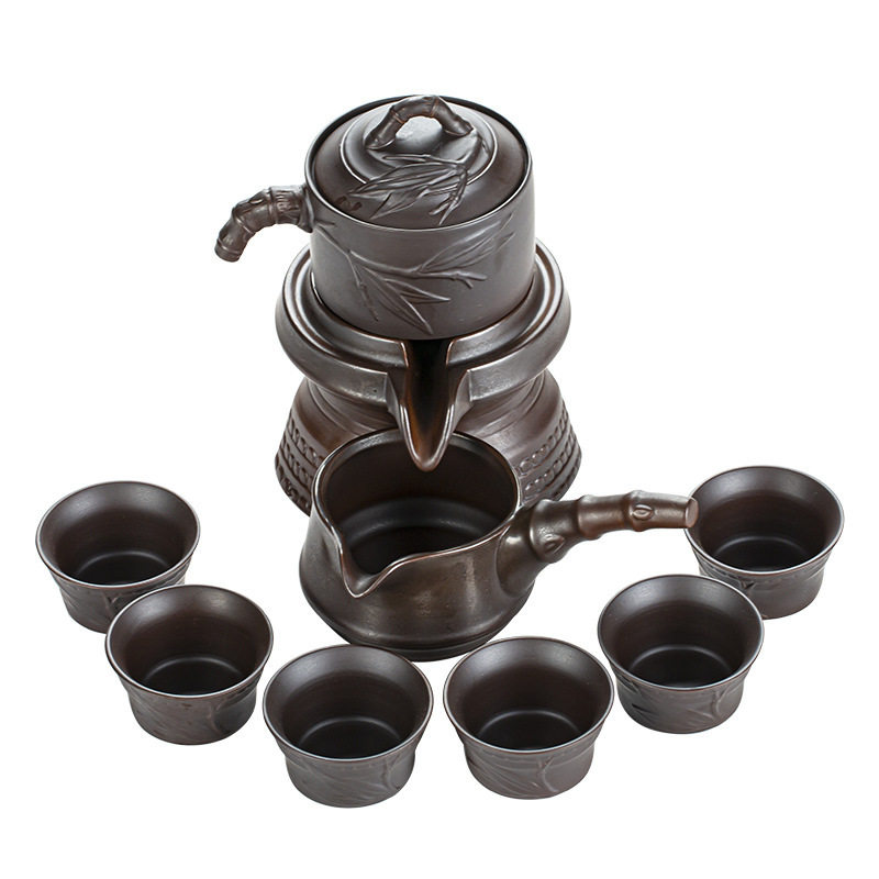 Creativity rises and rises when lazy stone grinds bamboo patterns to run semi-automatic home kung fu complete tea set set