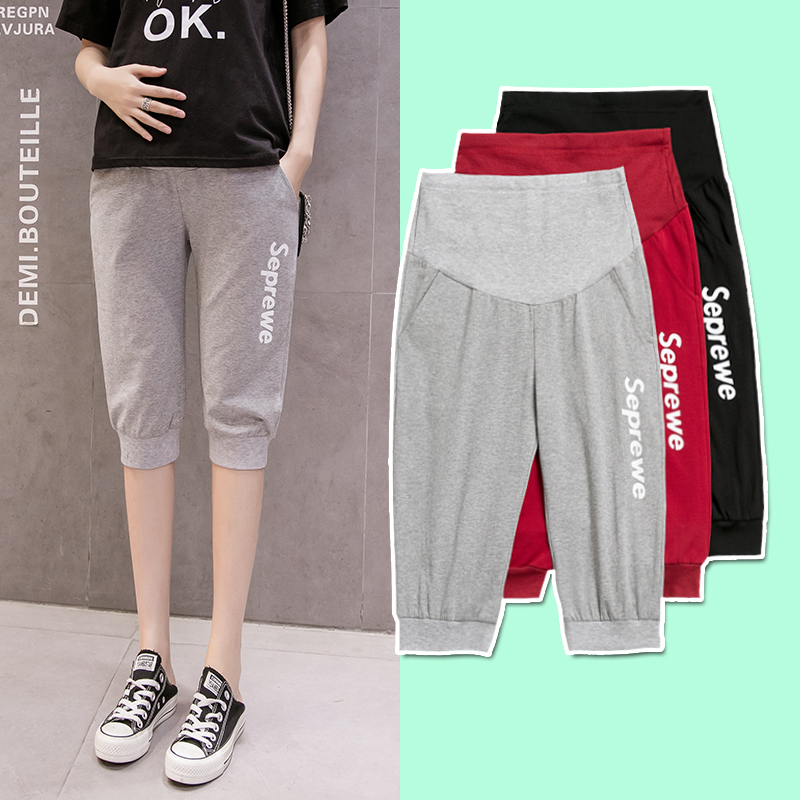 Pregnant women wear seven pants in summer wear weight large size 200 pounds loose belly and loose bottom casual pants