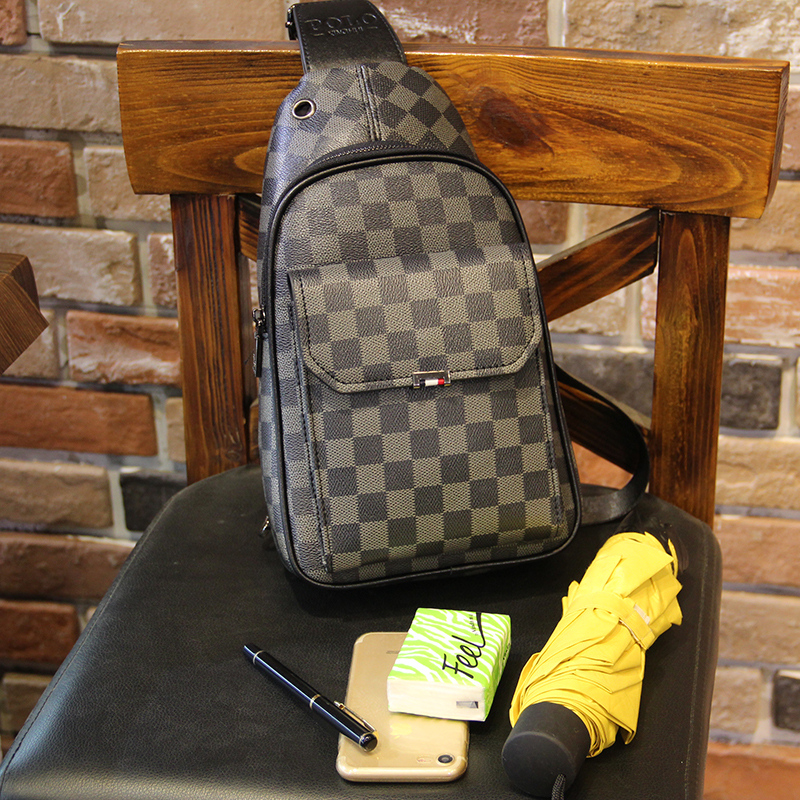 Hong Kong Men's New Tide Card Casual Retro 100 Hitch Checkered Chest Bag Single Shoulder Sloped Satchel Cortex small Shoulder Bag
